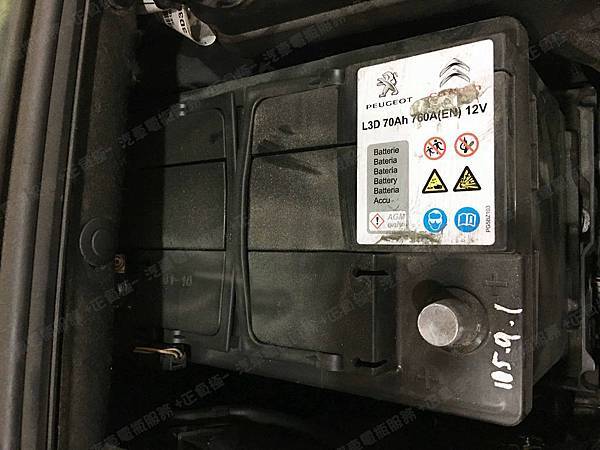 原裝汽車電池為 原廠 L3D AGM 容量70AH 冷啟動電流760A(EN)