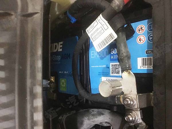 更換汽車電池為 EXIDE埃克塞德 法製 AGM EK800 容量80AH 冷啟動電流800A(EN)