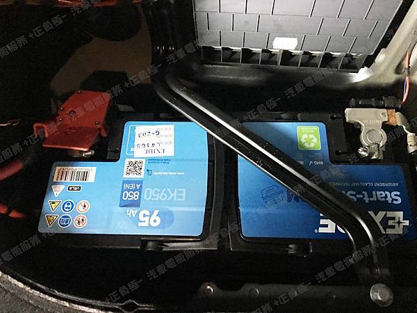 更換汽車電池為 EXIDE埃克塞德 法製 AGM EK950 容量95AH 冷啟動電流850A(EN)