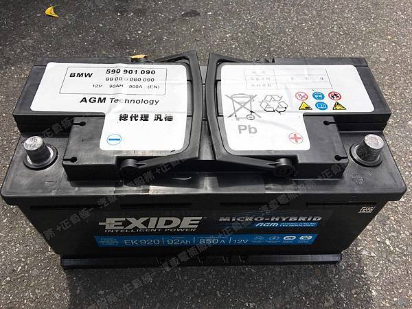 原裝汽車電池為 原廠 汎德貼標 EXIDE埃克塞德 法製 AGM EK920 容量92AH 冷啟動電流850A(EN)