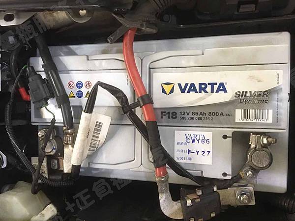 更換汽車電池為 德國VARTA華達 德國廠 銀合金 F18 容量85AH 冷啟動電流800A(EN)