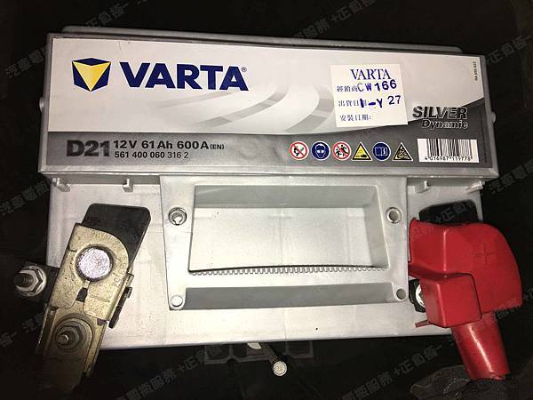 更換汽車電池為 德國VARTA華達 德國廠 銀合金 D21 容量61AH 冷啟動電流600A(EN)