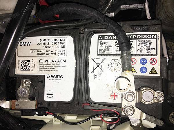 原裝汽車電池為 原廠 VARTA華達 德製 AGM 容量70AH 冷啟動電流760A(EN)