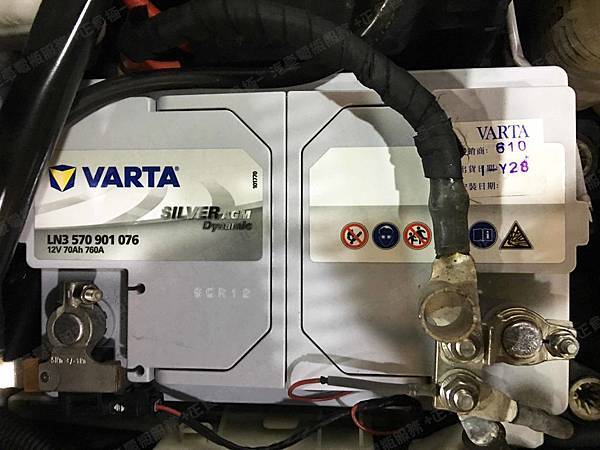 更換汽車電池為 德國VARTA華達 韓國廠 AGM LN3 570901076 容量70AH 冷啟動電流760A(EN)