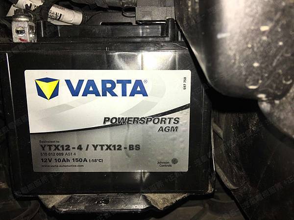 更換汽車電池為 VARTA華達 德製 AGM YTX12-BS 容量10AH 冷啟動電流150A(EN)