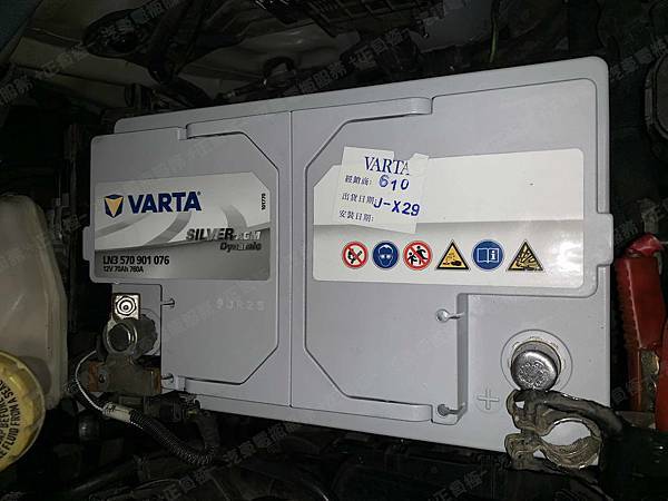 更換汽車電池為 德國VARTA華達 韓國廠 AGM LN3 570901076 容量70AH 冷啟動電流760A(EN)