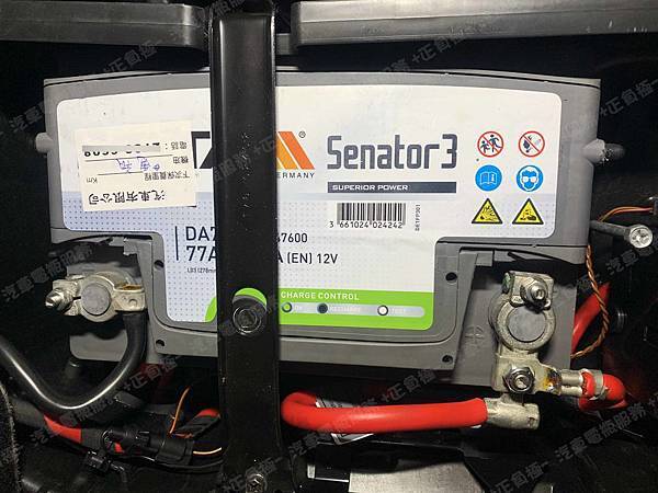 原裝汽車電池為 DETA德大 DA770 容量77AH 冷啟動電流760A(EN)