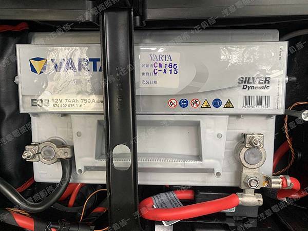 更換汽車電池為 德國VARTA華達 德國廠 銀合金 E38 容量74AH 冷啟動電流750A(EN)