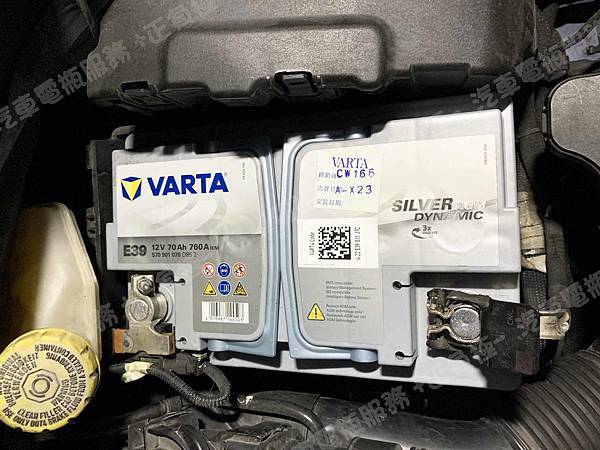 更換汽車電池為 德國VARTA華達 德國廠 AGM E39 容量70AH 冷啟動電流760A(EN)