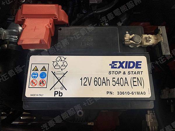 原裝汽車電池為 原廠 EXIDE埃克塞德 義大利製 EFB 容量60AH 冷啟動電流540A