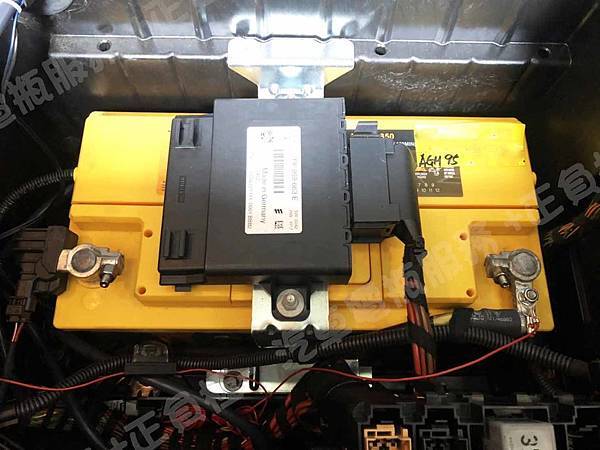原裝汽車電池為 ATLAS ABX 韓製 AGM AX595850 容量95AH 冷啟動電流850A(EN)