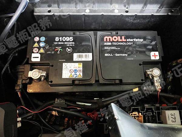 更換汽車電池為 MOLL莫爾 德國 AGM 81095 容量95AH 冷啟動電流850A(EN)