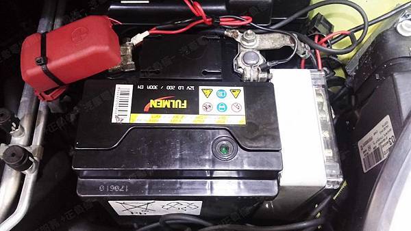 原裝汽車電池為 FULMEN 容量38AH 冷啟動電流300A(EN)