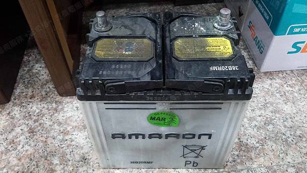 原裝汽車電池為 AMARON愛馬龍 印度製 38B20R-MF 容量35AH 冷啟動電流335A