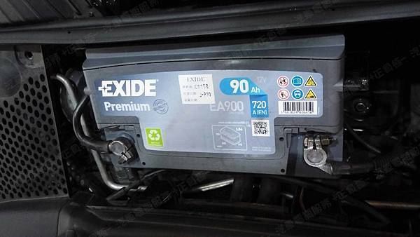 更換汽車電池為 EXIDE埃克塞德 法製 碳合金 EA900 容量90AH 冷啟動電流720A(EN)