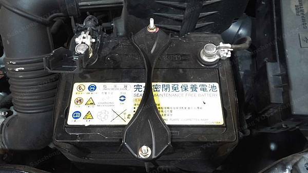 原裝汽車電池為 YUASA湯淺 台製 55D23L-CMF 容量60AH 冷啟動電流400A