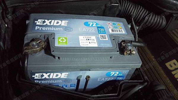 更換汽車電池為 EXIDE埃克塞德 法製 碳合金 EA722 容量720AH 冷啟動電流720A(EN)