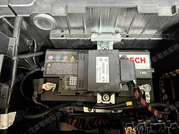 原裝汽車電池為 BOSCH博世 韓製 AGM LN5 容量95AH 冷啟動電流850A(EN)