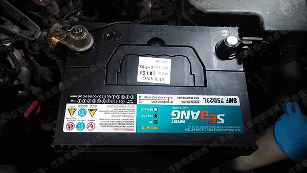 更換汽車電池為 SEBANG世邦 韓製 75D23L 容量65AH 冷啟動電流580A