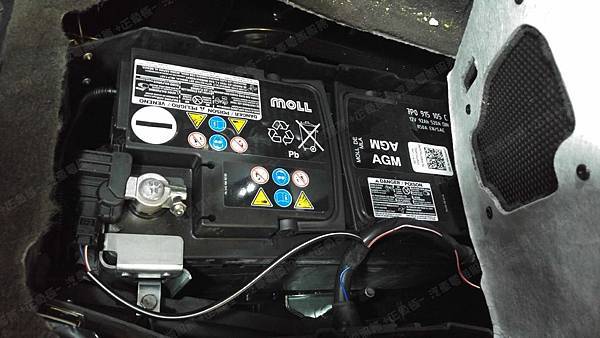 原裝汽車電池為 原廠 MOLL莫爾 AGM 容量92AH 冷啟動電流850A(EN)