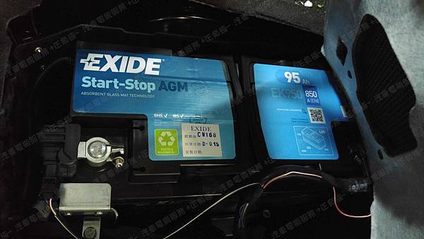 更換汽車電池為 EXIDE埃克塞德 法製 AGM EK950 容量95AH 冷啟動電流850A(EN)