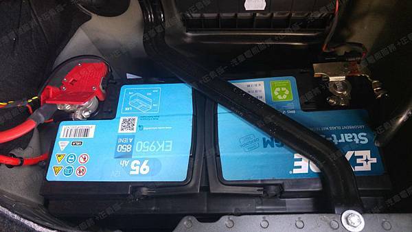 更換汽車電池為 EXIDE埃克塞德 法製 AGM EK950 容量95AH 冷啟動電流850A(EN)
