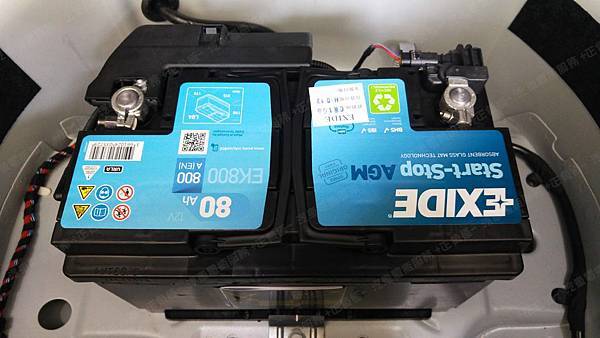 更換汽車電池為 EXIDE埃克塞德 法製 AGM EK800 容量80AH 冷啟動電流800A(EN)