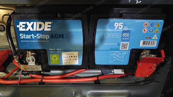 更換汽車電池為 EXIDE埃克塞德 法製 AGM EK950 容量95AH 冷啟動電流850A(EN)