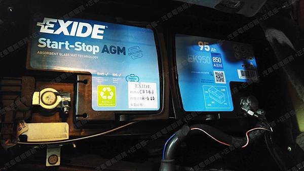 更換汽車電池為 EXIDE埃克塞德 法製 AGM EK950 容量95AH 冷啟動電流850A(EN)