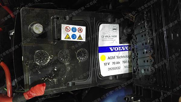 原裝汽車電池為 原廠 VOLVO AGM 容量70AH 冷啟動電流760A(EN)