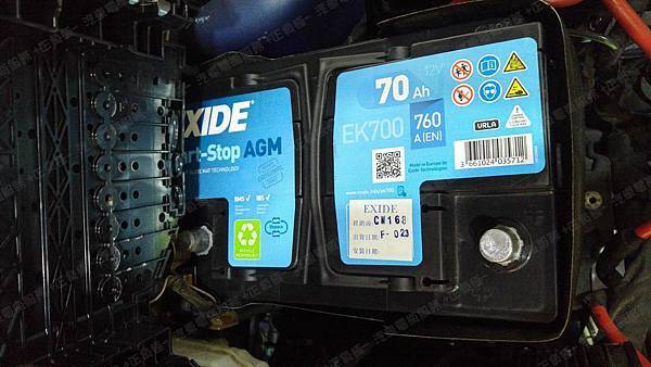 更換汽車電池為 EXIDE埃克塞德 法製 AGM EK700 容量70AH 冷啟動電流760A(EN)