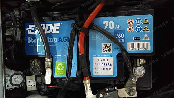 更換汽車電池為 EXIDE埃克塞德 法製 AGM EK700 容量70AH 冷啟動電流760A(EN)