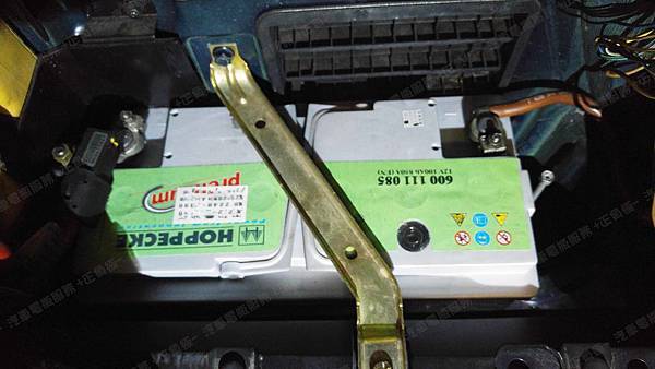 原裝汽車電池為 HOPPECKE雙樹 60011 容量100AH 冷啟動電流850A(EN)