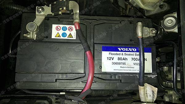 原裝汽車電池為 原廠 VOLVO 容量80AH 冷啟動電流700A(EN)