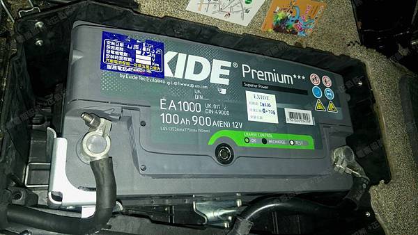 原裝汽車電池為 EXIDE埃克塞德 法製 碳合金 EA1000 容量100AH 冷啟動電流900A(EN)