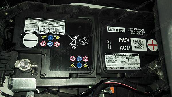 原裝汽車電池為 原廠 Banner AGM 容量92AH 冷啟動電流850A(EN)