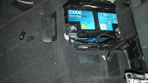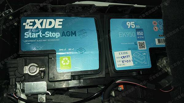 更換汽車電池為 EXIDE埃克塞德 法製 AGM EK950 容量95AH 冷啟動電流850A(EN)