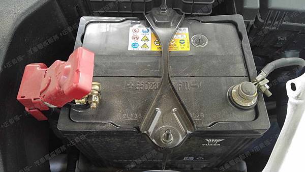 原裝汽車電池為 原廠 YUASA湯淺 台製 55D23R-CMF 容量60AH 冷啟動電流400A