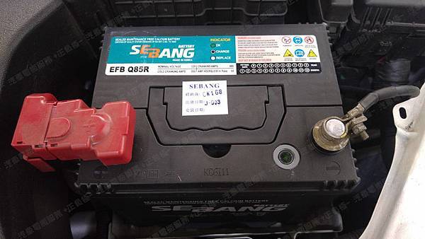 更換汽車電池為 SEBANG世邦 韓製 EFB Q85R 容量65AH 冷啟動電流700A