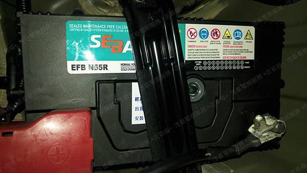 更換汽車電池為 SEBANG世邦 韓製 EFB N55R 容量55AH 冷啟動電流500A ※有排氣孔設計