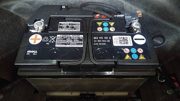 原裝汽車電池為 MOLL莫爾 容量80AH 冷啟動電流640A(EN)