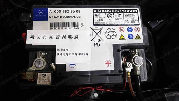 原裝汽車電池為 原廠 BENZ AGM 容量60AH 冷啟動電流680A(EN)