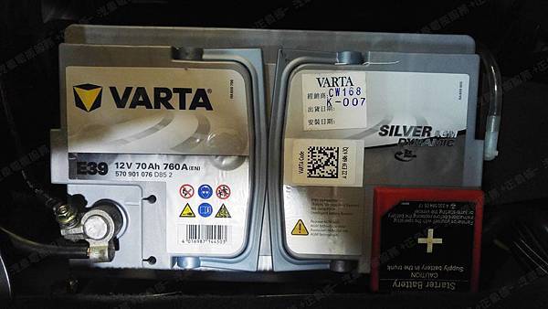 更換汽車電池為 德國VARTA華達 德國廠 AGM E39 容量70AH 冷啟動電流760A(EN)
