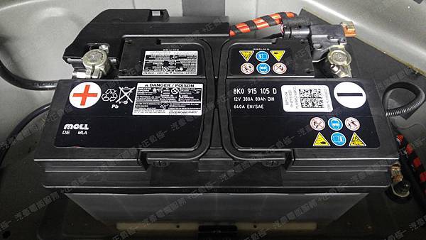 原裝汽車電池為 MOLL莫爾 容量80AH 冷啟動電流640A(EN)