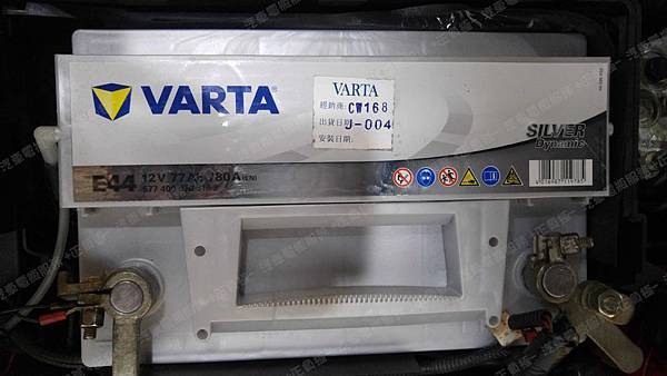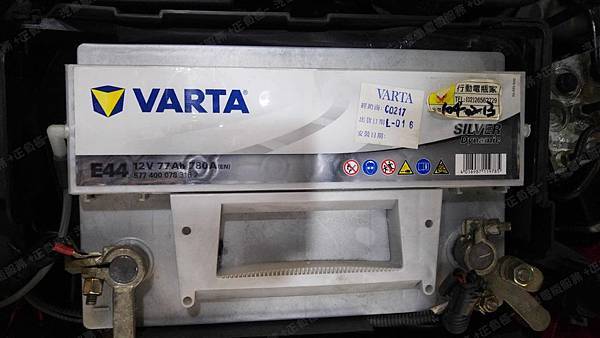 更換汽車電池為 德國VARTA華達 德國廠 銀合金 E44 容量77AH 冷啟動電流780A(EN)