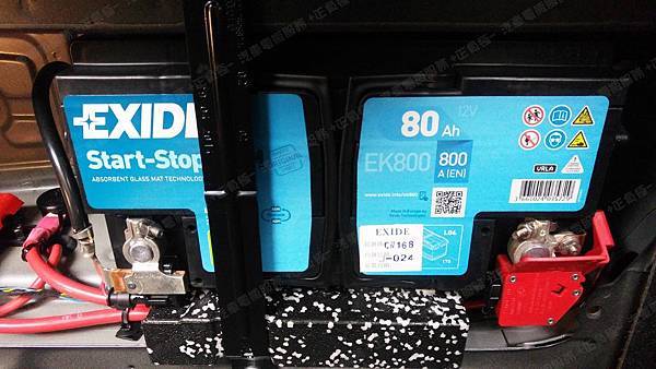 更換汽車電池為 EXIDE埃克塞德 法製 AGM EK800 容量80AH 冷啟動電流800A(EN)