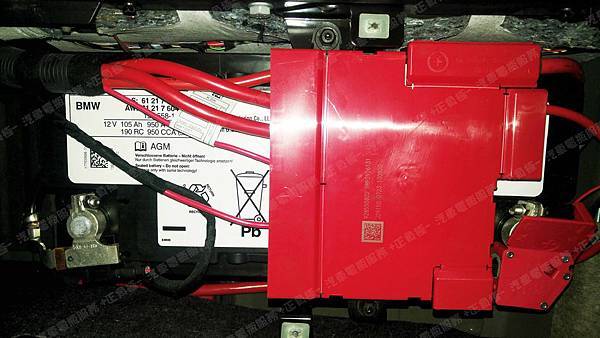 原裝汽車電池為 原廠 BMW AGM 容量105AH 冷啟動電流950A(EN)