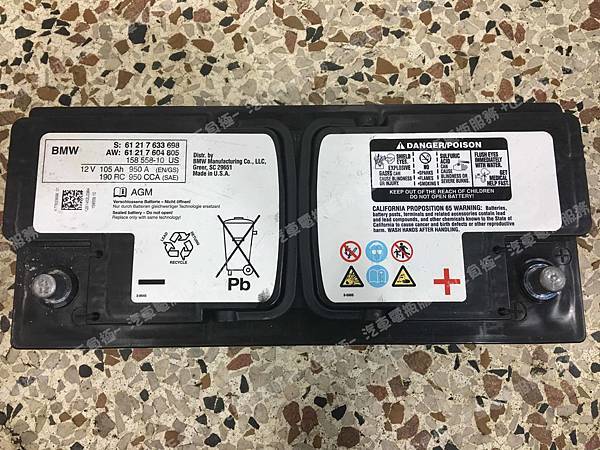 原裝汽車電池為 原廠 BMW AGM 容量105AH 冷啟動電流950A(EN)