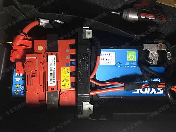 更換汽車電池為 EXIDE埃克塞德 法製 AGM EK1050 容量105AH 冷啟動電流950A(EN)