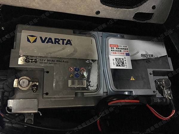 更換汽車電池為 德國VARTA華達 德國廠 AGM G14 容量95AH 冷啟動電流850A(EN)